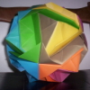 Description: A complex modular origami ball created by a musician.